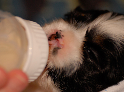 Si les nouveau-nés sont trop faibles pour téter, il est possible de faire mettre en place par votre vétérinaire une sonde gastrique, dont la longueur sera réévaluée chaque semaine. Le danger de cette alimentation « forcée » est de faire absorber trop rapidement de trop grandes quantités de lait.