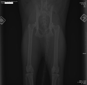 Radiographie des hanches chez un chat.