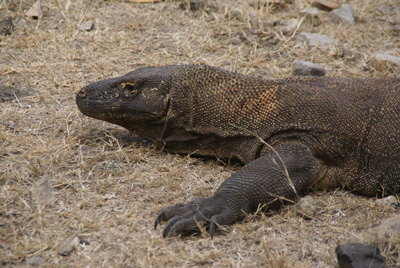 > Le plus grand des varans, le varan de Komodo, vit en Indonésie. Il mesure 2 à 3 m de long et pèse jusqu’à 70 kg. Il peut manger un homme…